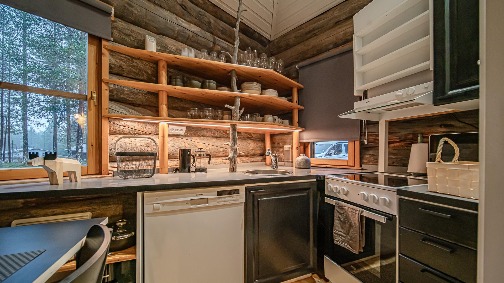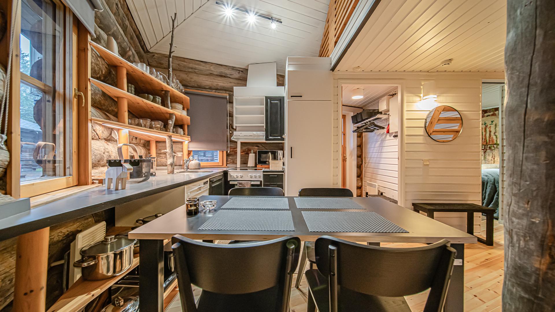 Lapin henkeä ja huoletonta lomailua siistissä keloparitalon puolikkaassa. Mesimarjan sijainti Ylläsjärvellä on erinomainen erityisesti hiihtoa ja luonnossa liikkumista ajatellen. Ylläksen rinteet ovat vain 2 km päässä, ja Suomen laajin latuverkosto alkaa 200 metrin päästä mökistä. Grillitien SkiBussi-pysäkille on matkaa noin 300 metriä, joten pääset helposti sekä rinteeseen että ruokakauppaan.